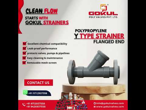 Gokul Poly Valves offers a high-quality Plastic Y Strainer, designed for effective filtration of debris and solid particles from liquid and gas pipelines. Manufactured using premium-grade Polypropylene, HDPE, or PVC, this Y-type strainer ensures excellent chemical resistance, long service life, and minimal maintenance, even in corrosive environments.